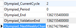 [23:32:20] INFO Olympiad System: Loading Olympiad System.... [23:32:20] INFO Olympiad System: Currently in Olympiad Period [23:32:20] INFO Olympiad System: Period Ends.... [23:32:20] INFO Olympiad System: In 0 days, 0 hours and 28 mins. [23:32:20] INFO Olympiad System: Next Weekly Change is in.... [23:32:20] INFO Olympiad System: In 3 days, 13 hours and 3 mins. [23:32:20] INFO Olympiad System: Loaded 529 Noblesses [23:32:20] INFO Olympiad System: Competition Period Starts in 0 days, 18 hours and 28 mins. [23:32:20] INFO Olympiad System: Event starts/started: Fri Mar 01 18:00:20 GMT+12:00 2013Olympiad_CurrentCycle 18 Olympiad_Period 0 Olympiad_End 1364731243255 - Sun, 31 Mar 2013 12:00:43 GMT в итоге!!!! и как быть?????? Olympiad_ValdationEnd 1362096043204 - Fri, 01 Mar 2013 00:00:43 GMT Olympiad_NextWeeklyChange 1362700843255 - Fri, 08 Mar 2013 00:00:43 GMT |