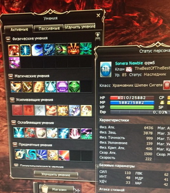 [14:58:14] INFO Project Revision: ........ L2s [17045] [14:58:14] INFO Build Revision: .......... 5063 [14:58:14] INFO Update: .................. Epic Tale of Aden: Infinite of Odysey [14:58:14] INFO Build date: .............. 2015.07.17 17:13 [14:58:14] INFO Compiler version: ........ 1.8.0_45-b14 (Oracle Corporation) [14:58:14] INFO ================================================= Диверсант эура взял дуал Шилен кнайта, результат на скрине. Внезапно появились дополнительные скилы от паладина и камаэля. http://forum.l2-scripts.ru/attachmen...1&d=1437552212 |