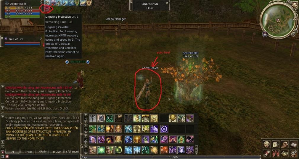 3. When AeoreHealer being attacked, she auto heal herself and auto recived Lingering Protection lv1 buff. (retail not have) --> only with Celestial Protection skill