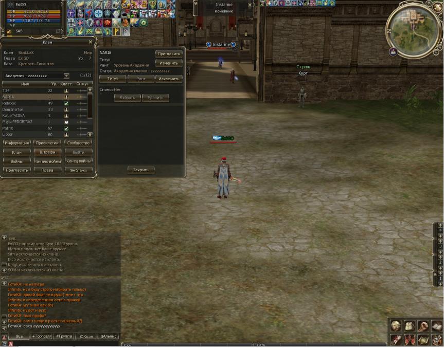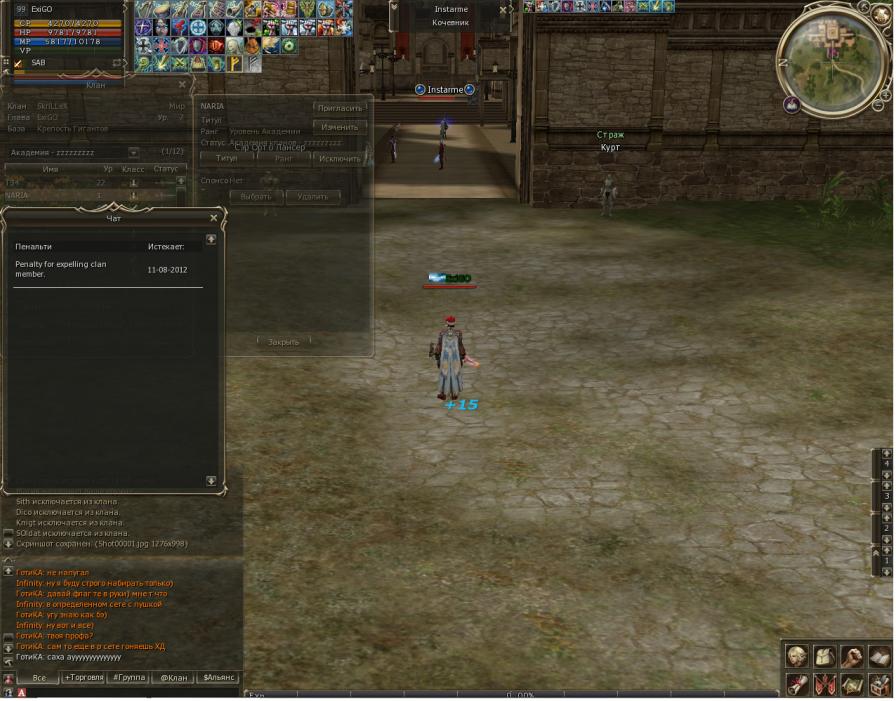 В системном чате на первом скриншоте видно что были исключены академики из клана, а на втором видно что дался штраф.