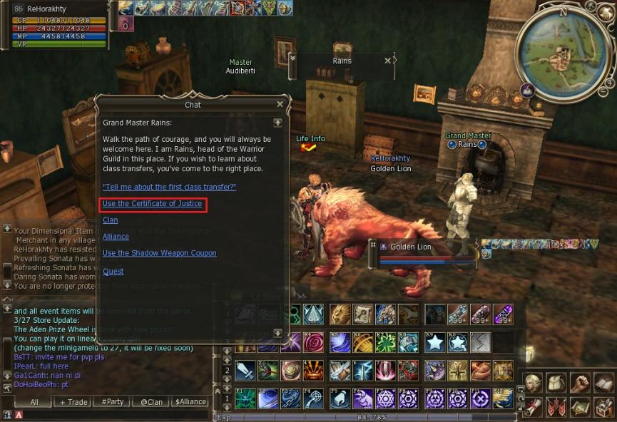 When done quest tranfer 2nd, have 40 proof of justice to exchange item. But in server test, dont have this, just have exchange shadown item (old ver.)