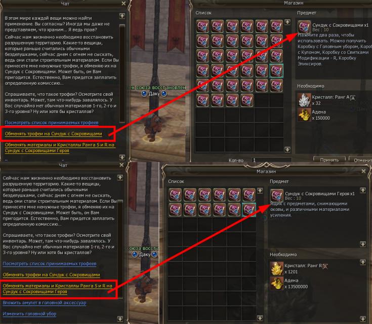 Сейчас Даку дает нам на обмен: Сундук с сокровищами и Сундук с сокровищами героя