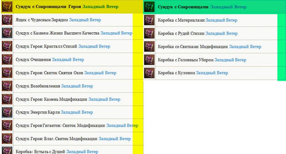 Но, у них название должно быть: Сундук с сокровищами Западный ветер и Сундук с сокровищами героя Западный ветер