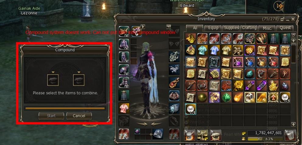 2. Compound system doest work: Can not drag items into combine window so can not press "Start" button to combine items also.