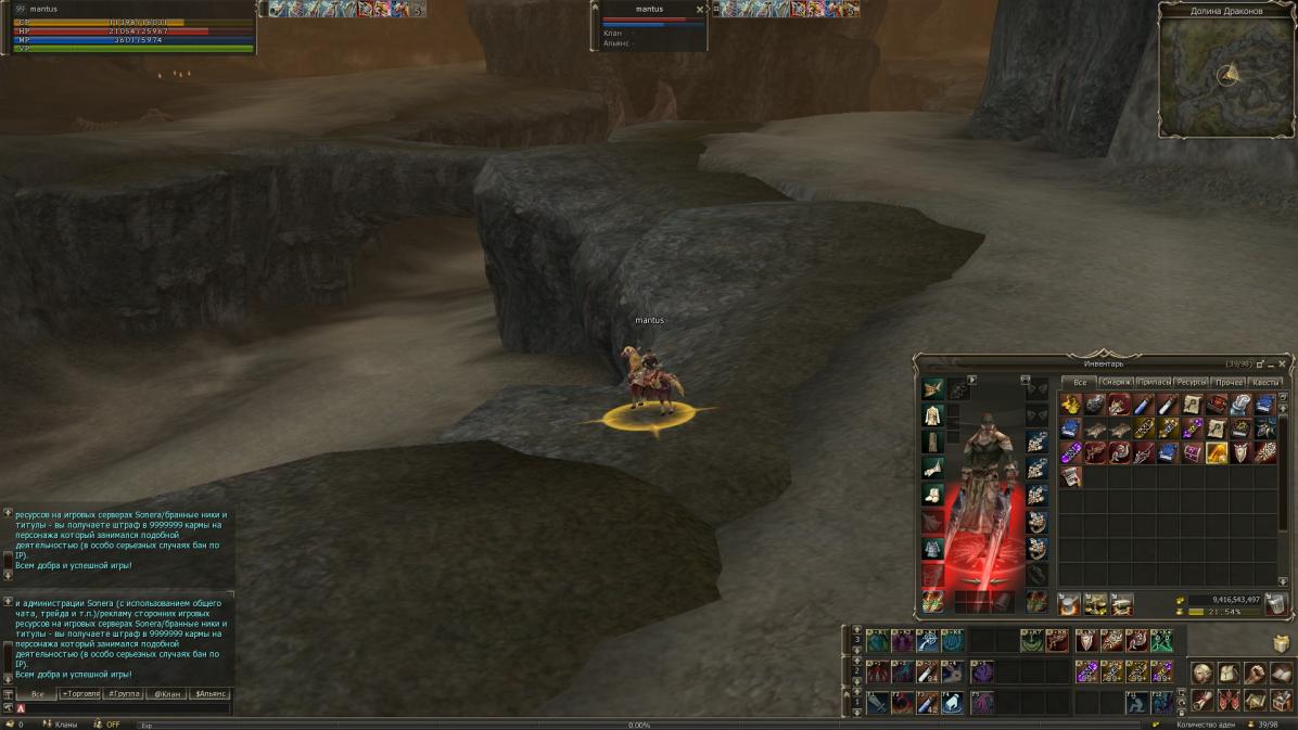 [17:47:43] INFO Project Revision: ........ L2s [14003] [17:47:43] INFO Build Revision: .......... 3886 [17:47:43] INFO Update: .................. Epic Tale of Aden: Ertheia [17:47:43] INFO Build date: .............. 2014.12.18 19:40 [17:47:43] INFO Compiler version: ........ 1.7.0_67-b01 (Oracle Corporation) [17:47:43] INFO ================================================= Просто пустые локации, мобов нет. Последний раз редактировалось Scorpius; 24.12.2014 в 15:04. |