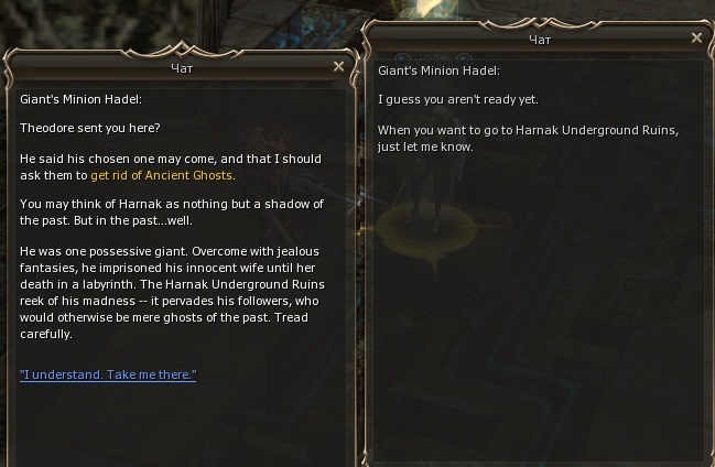 НПЦ Хадел не дает задание на то, чтобы набить 12 мобов, по кругу гоняет диалог о том, что "скажешь как готов будешь ..."