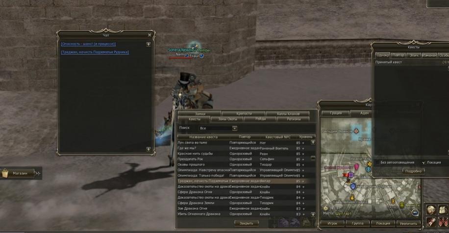 [21:46:21] INFO Project Revision: ........ L2s [11522] [21:46:21] INFO Update: .................. Chapter 3: Lindvior [21:46:21] INFO Build date: .............. 2014.06.04 19:21 [21:46:21] INFO Compiler version: ........ 24.51-b03 (Oracle Corporation) [21:46:21] INFO ================================================= Не берется данный квест, отсутствует диалог. |