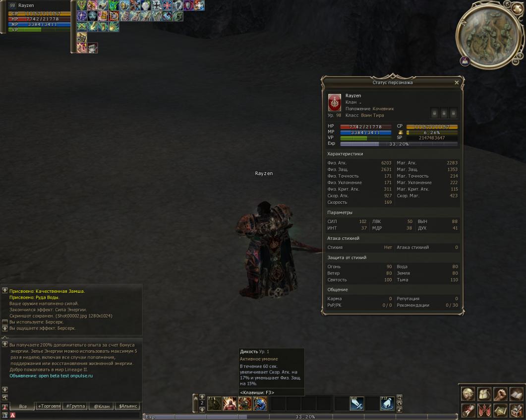 Скилл Берсерк у воина тира не работает (недаёт статы)