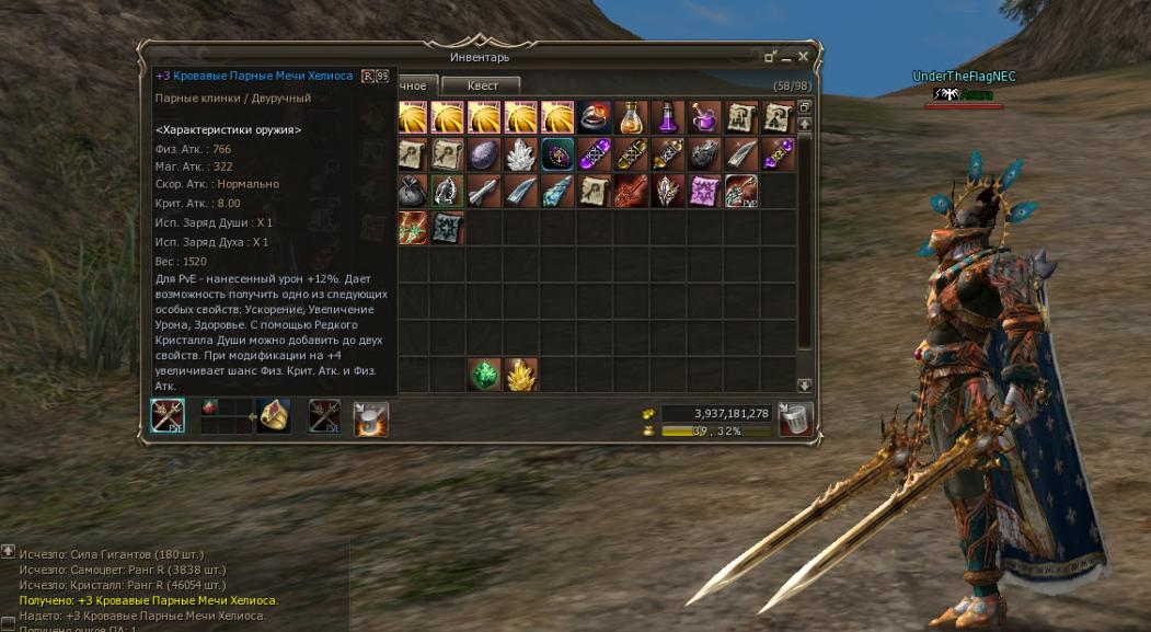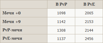 +9 мечи мы взяли для того, чтобы физическая атака мечей была сравнимой (чуть большей), и мечи отличались только типом, ведь при вставке PvP и PvE параметры оружия существенно увеличиваются.