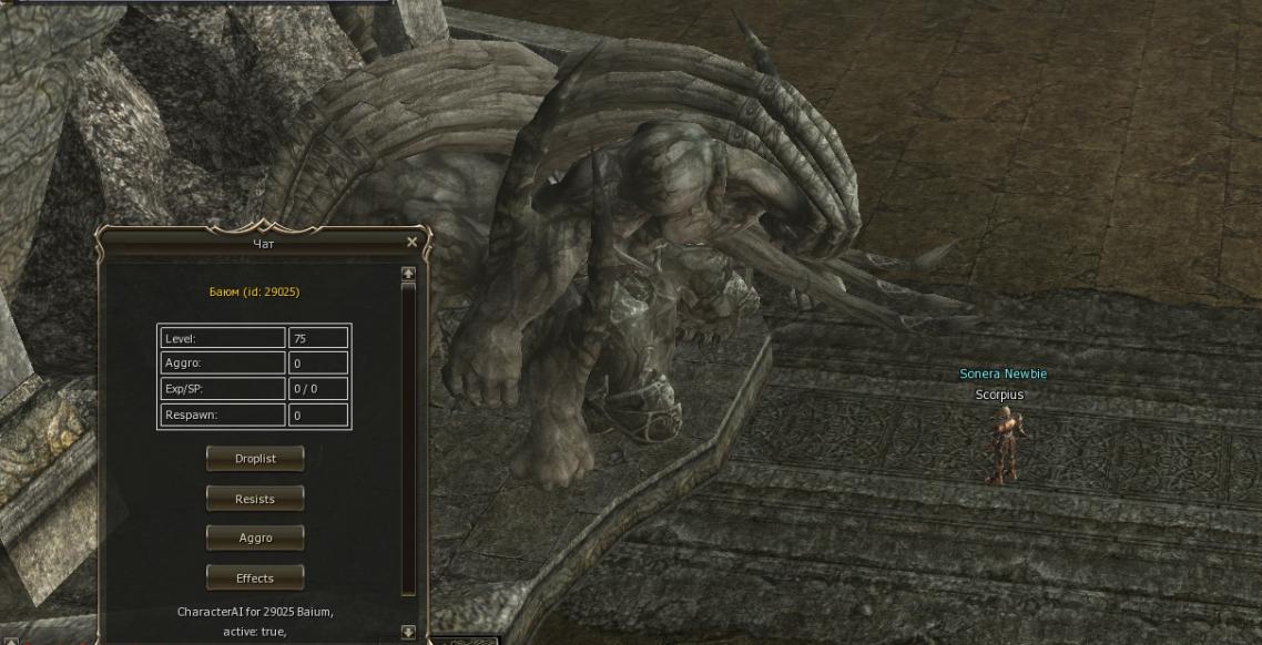 При попытке портанутся к Баюму кристал сообщает что Баюм уже разбужен, и зайти к нему нельзя. После принудительного телепорта ГМом я увидел что статуи теперь 2(!) причем у одной статус respawn 0, другая - respawn "now". Delete, Kill + ребут проблему не решают, видимо ошибка в скрипте который загружает 2 статуи. Прошу скорейшего пояснения или решения данной проблемы. |