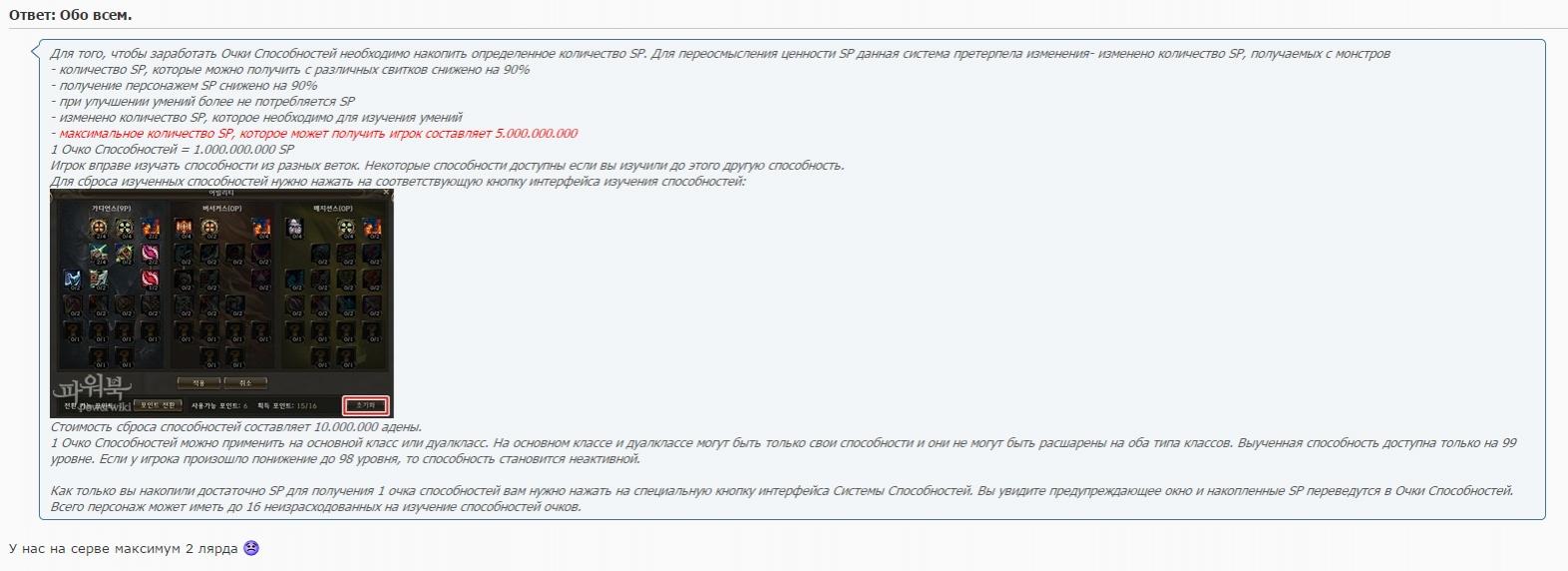 По умолчанию Максимальное количество SP