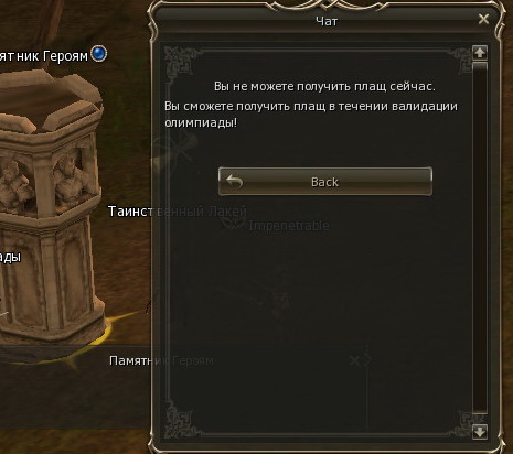 Игроки не смогли получить плащи за 2 место за участие в олимпиаде. НПЦ отвечал таким образом (см. скрины).