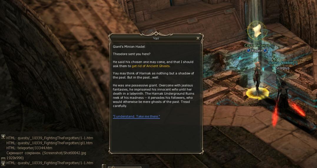 [00:29:22] INFO Project Revision: ........ L2s [14244] [00:29:22] INFO Build Revision: .......... 3962 [00:29:22] INFO Update: .................. Epic Tale of Aden: Ertheia [00:29:22] INFO Build date: .............. 2014.12.29 02:33 [00:29:22] INFO Compiler version: ........ 1.7.0_67-b01 (Oracle Corporation) [00:29:22] INFO ================================================= Перс перерожденный. Сравнивал с файлами Линдвиора - все идентично. Но, квест не проходится. Если просто нафармить 12 мобов тоже результата нет. Квест не работает. http://l2central.info/wiki/Оковы_прошлого Цитата: