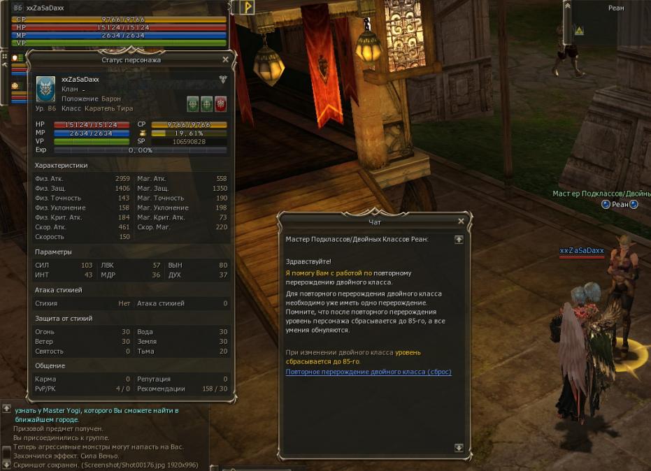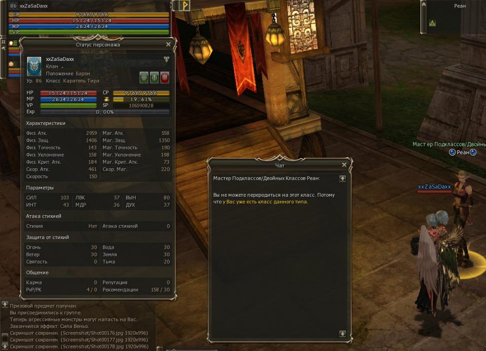 [22:46:25] INFO Project Revision: ........ L2s [12920] [22:46:25] INFO Update: .................. Chapter 3: Lindvior [22:46:25] INFO Build date: .............. 2014.11.03 13:41 [22:46:25] INFO Compiler version: ........ 24.51-b03 (Oracle Corporation) [22:46:25] INFO ================================================= Камаэль не может сбросить свой дуал класс, нпц говорит что данный класс уже имеется. Причем он так отвечает всегда, при любом выборе. Сам тестировал - проблема действительно есть. |