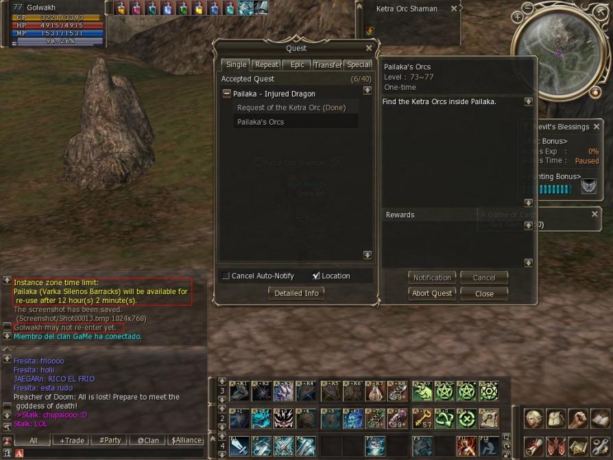 If you are making a Pailaka and you relog or your connection reset, you should can enter again or appear in the instance in the place where you logout.
