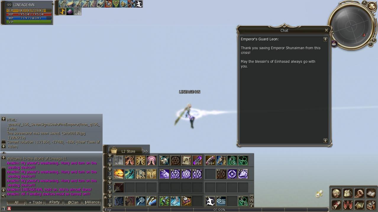 <list> <!-- SSQ Necropolis --> <instance id="112" name="Disciples Necropolis (Past)" maxChannels="20" collapseIfEmpty="10" timelimit="60" dispelBuffs="false"> <collapse on-party-dismiss="true" timer="60"/> <level min="79" max="99"/> <party min="1" max="1"/> <return loc="171864 -17480 -4896"/> <teleport loc="-89560 215784 -7488"/> <remove itemId="0" count="0" necessary="false"/> <give itemId="0" count="0"/> Need to replace return loc from 171864 -17480 -4896 to 169096 -18184 -3181 because with loc: 171864 -17480 -4896 you will get geo error Последний раз редактировалось kenshin; 16.05.2013 в 12:33. |